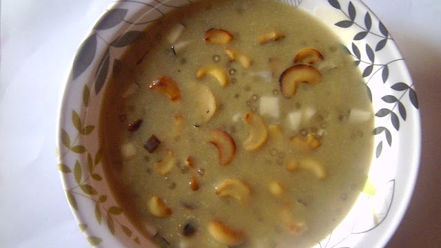 Heat ghee in a small pan, add cashews and fry till golden, add raisins and off the heat.