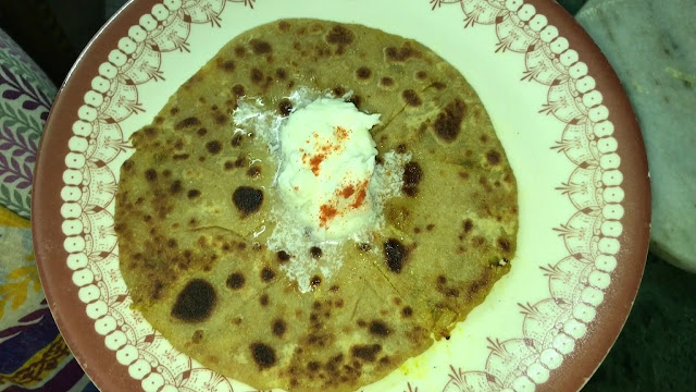 Sprinkle flour as needed and roll to paratha, slightly thicker than phulka.