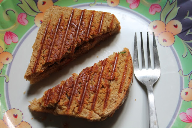If you have green chutney or prefer to use sauce, you can spread it. First butter the bread on the inner side as well and then the sauce or chutney.